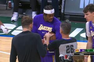 体育资讯11月17日讯 昨日湖人战胜雄鹿的赛后,双方球员以及裁判针对比赛用球展开了一段拉扯。